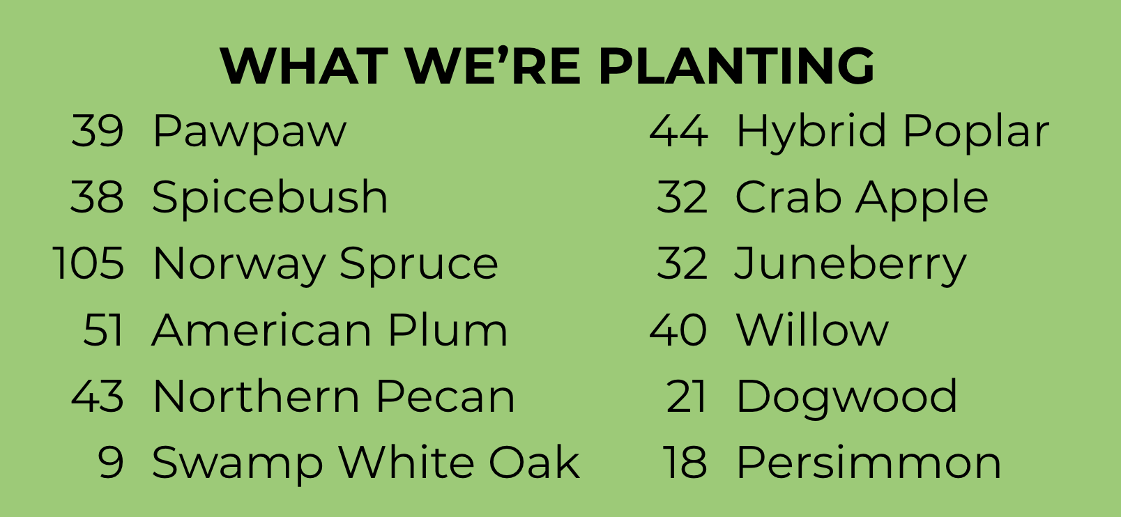 Protection: The trees will create a windblock for our crops.