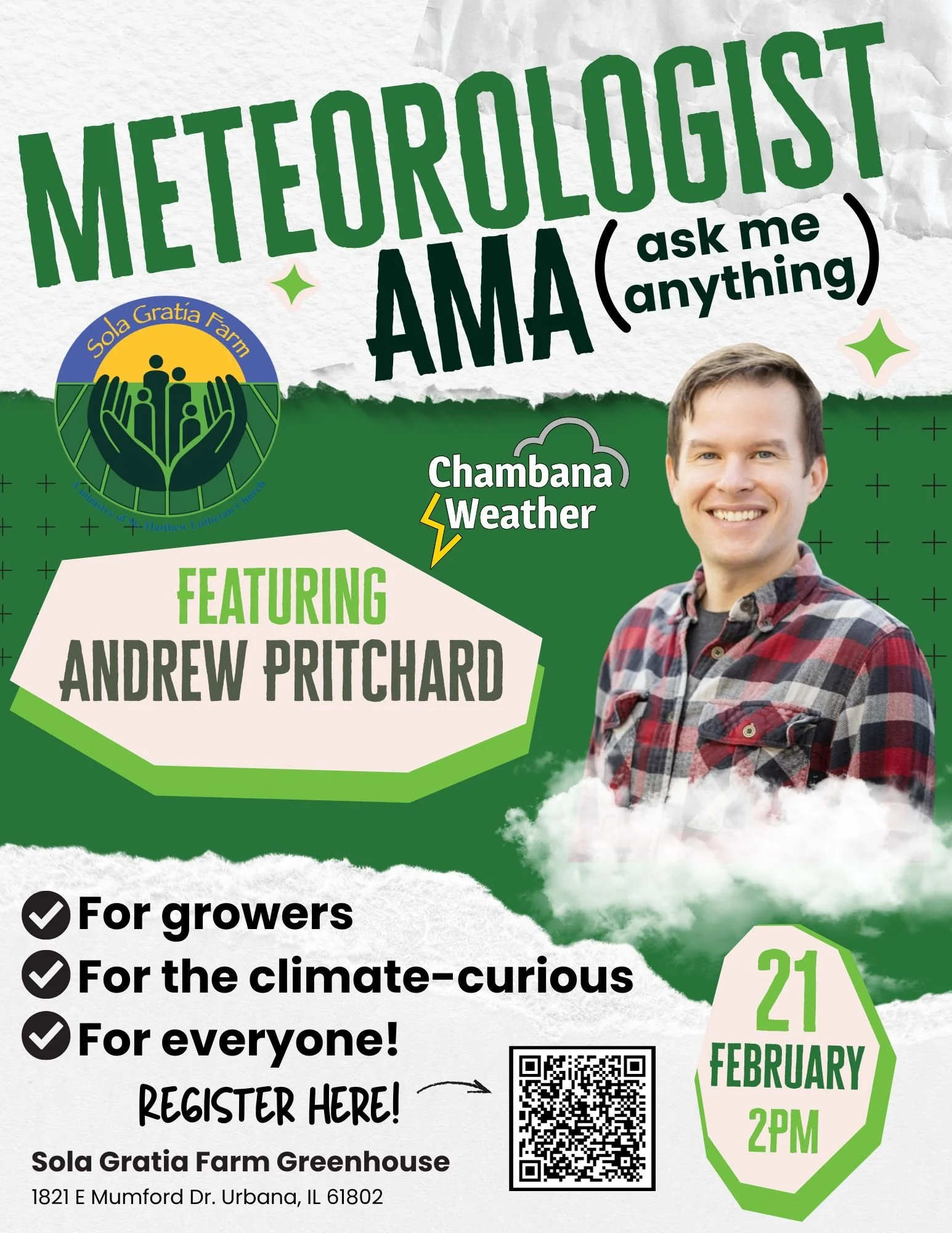 Andrew Pritchard is an Award Winning Weather Risk Meteorologist and Sola Gratia Farm's go-to weather expert who provides local updates through his Chambana Weather Facebook page.
