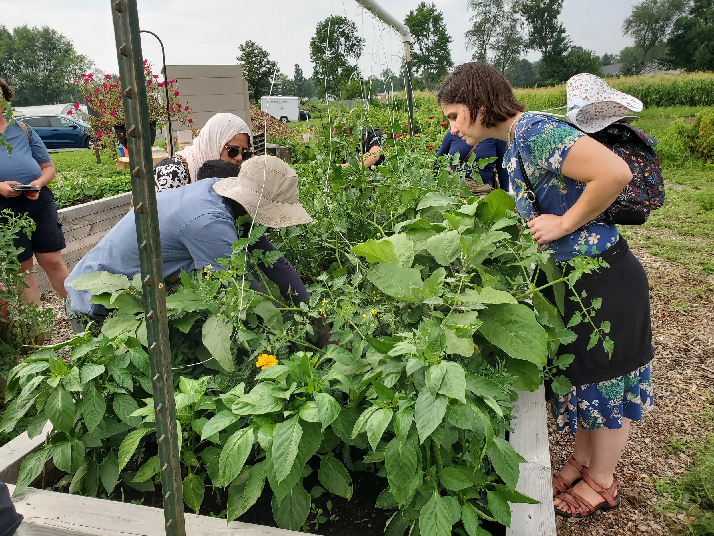 We are part of a coalition of local organizations that leads Solidarity Gardens, a collaborative that supports community members in growing food for themselves and their neighbors. Solidarity Gardens supports a network of community gardens around Champaign-Urbana, operates donation sites for home gardeners to share their excess produce (including one at our Community Classroom site), and provides free garden plots to low-income and immigrant gardeners. We have provided educational and coordination support as well as donating seeds, starts, and other supplies for use in community and private gardens. This project is a collaboration with Cunningham Township, Champaign Park District, Urbana Park District, and other organizations. Through Solidarity Gardens, we have facilitated 12,000 extra pounds of produce to be grown and shared in our community!